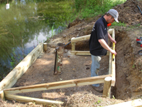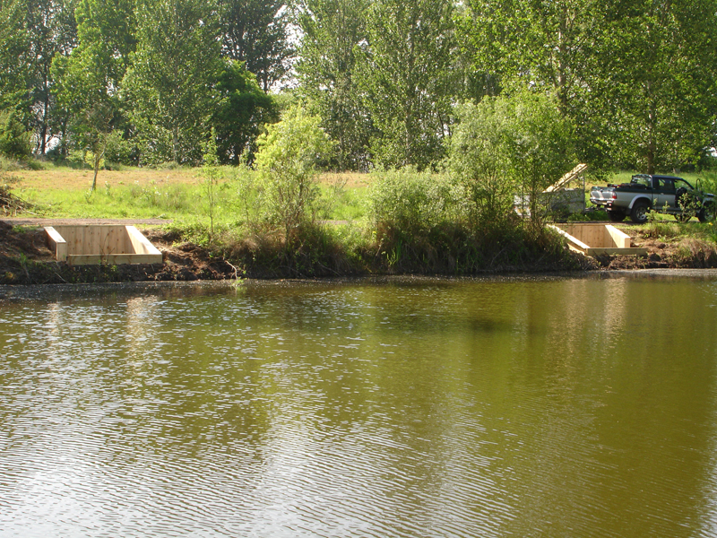 We can excavate and refurbish dug-out style swims utilising retaining walls and front sleeper revetments. We help you choose the most suitable and cost-effective materials to offer anglers the safest and best-suited lake access. Swims can be designed to your needs and fishery type, from simple match pegs to dug-outs with steps, with room for accommodating bivvies.